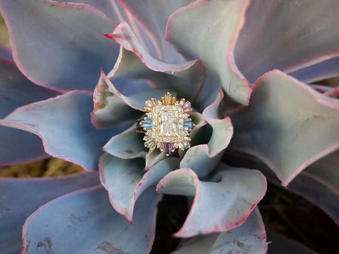 When I was selecting my engagement ring, I wanted something that captured the beauty and warmth of a sunset. The soft blush pinks, deep oranges, and vibrant purples—all of these colors represent not only the breathtaking scenes we’ve witnessed together but also the journey we’ve taken as a couple. And just like a sunset, our love story has its radiant peaks and serene moments.