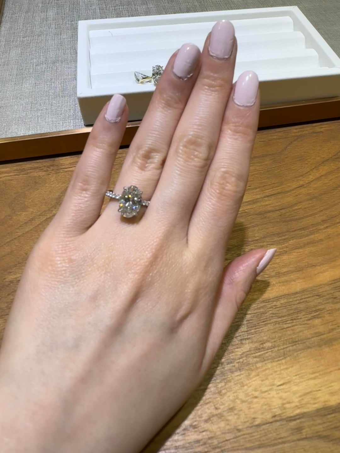 One of the nice things about Harry Winston is the overall construction of the ring is really high quality, so I haven’t experienced any issues with the security of four prongs, any hair snagging, or discomfort with a pave band on mine. So there’s theoretically no need to factor in the downsides of a four pronged solitaire, or there shouldn’t be any way at their price point. I think their pave bands are noticeably smoother than other brands I tried while ring shopping too. My ring feels very comfortable and secure so far the last few months wearing it.