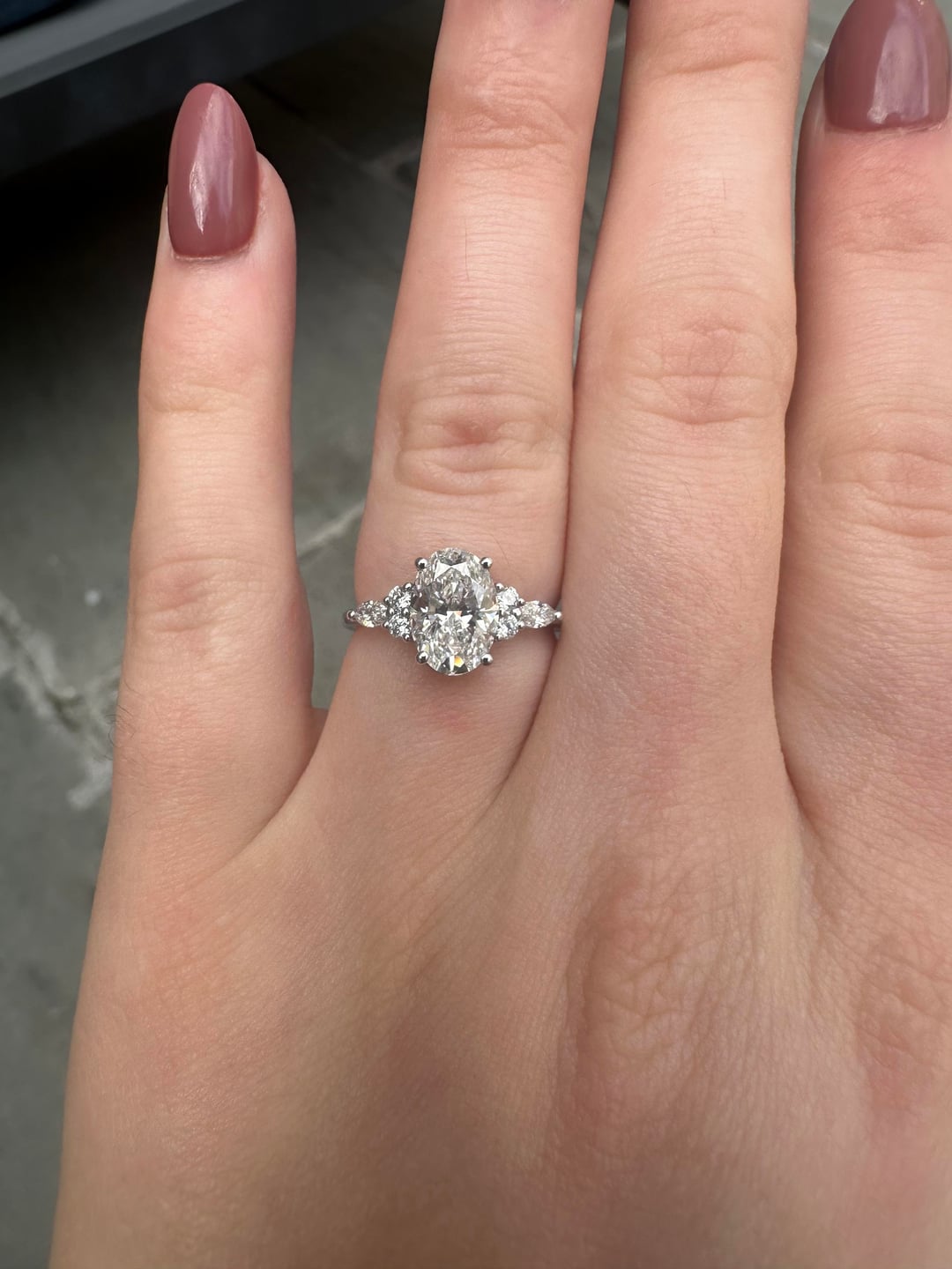 My fiancé and I worked together to pick out the ring—he knew I’d want to be involved in the process, especially since I’m particular about details! After viewing different styles and understanding the pros and cons of choices, we settled on this beauty. 🌟