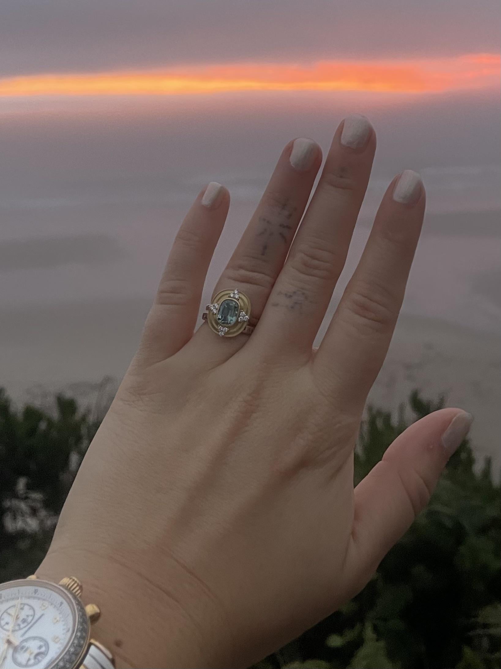 Gorgeous! I absolutely love “non-traditional” rings, and yours is a perfect example of WHY I love them so much! So unique & beautiful. Congratulations on your engagement!✨🩵