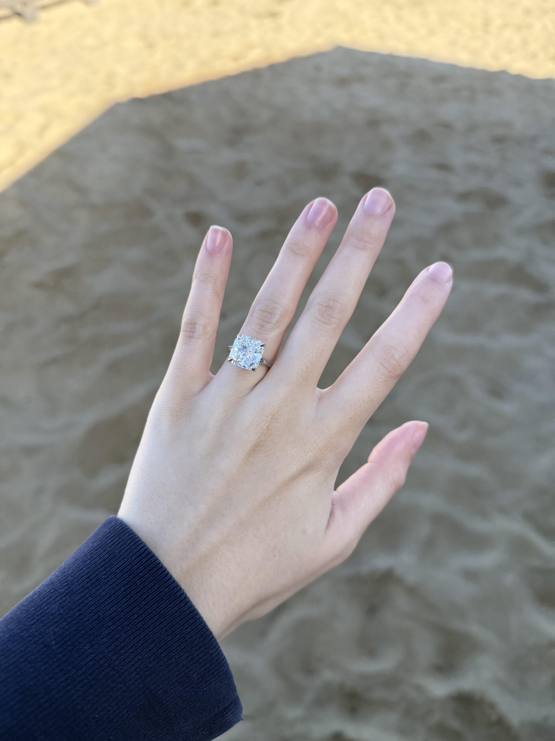 Love that square/cushion stone, such a beautiful shape on you! Congratulations!