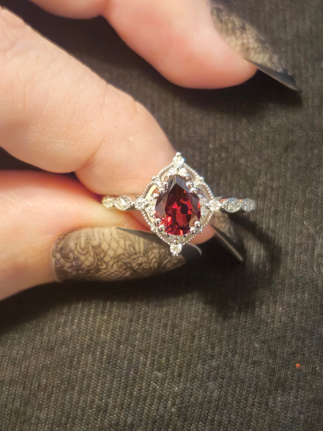 Oh wow, this looks amazing on you! I love how the deep red center stone stands out against the silver it feels elegant and a little bold in the best way. And your story is just the sweetest.
