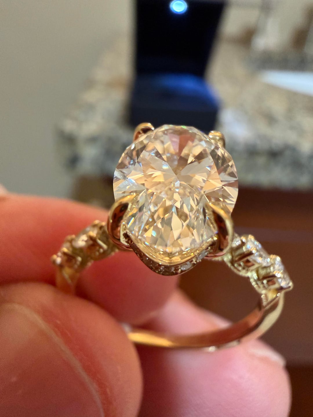 I know many of you have stories to share about your engagement rings—be it a unique design, a funny story about the proposal, or insights about gemstones, cuts, and settings. Here are a few discussion prompts to get the conversation rolling: