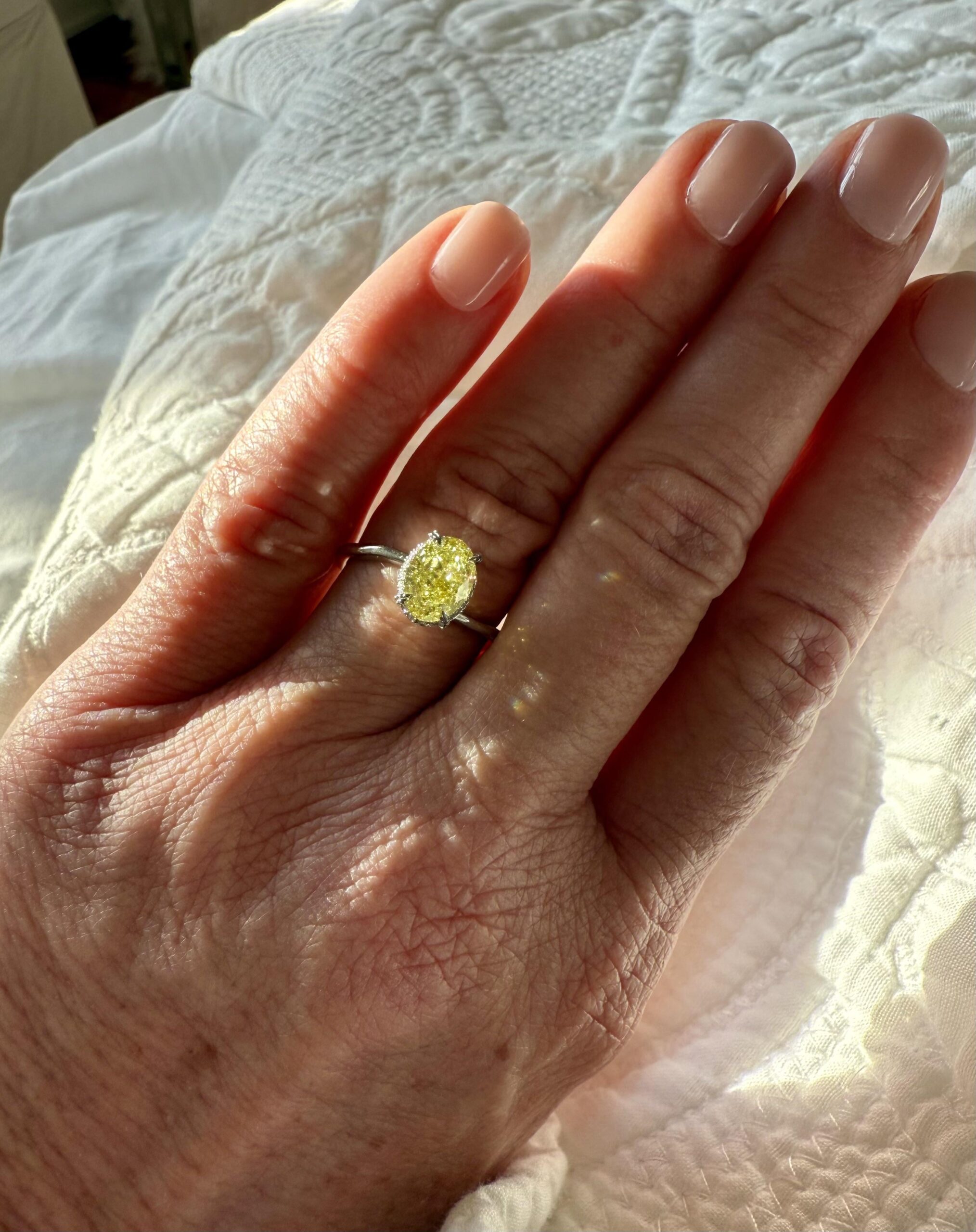 I love it! Usually I don’t like oval shape; im more of a princess cut person, but this is still lovely. And I LOVE yellow diamonds!