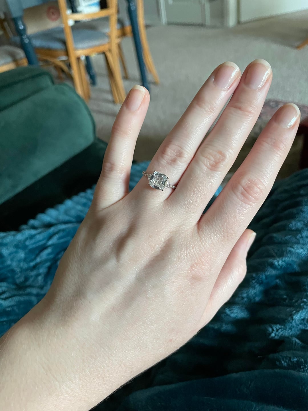 Honestly it’s such a shame white Sapphire doesn’t get as much love as diamonds and moissanites. I really like how transparent it is but I can see dirt and other things showing more easily because of that? I wonder if that’s another reason why it’s not as popular besides the sparkle. I love it though!