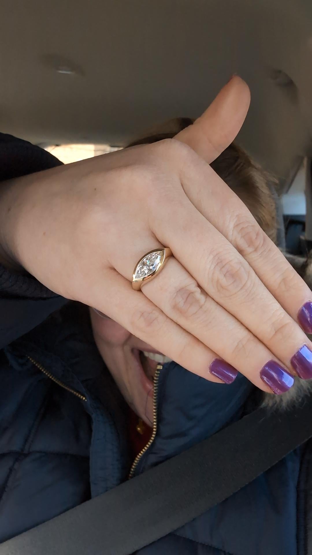 I don’t usually love a marquise but I absolutely LOVE this marquise and how it’s set. Simply stunning! 😍😍Congratulations!