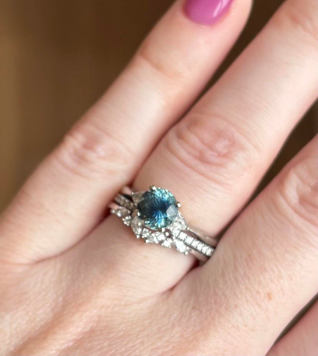 Gorgeous! 🥰 I chose a similar teal sapphire ring, but I’ve never seen a bi-colour stone before! That’s wonderful!