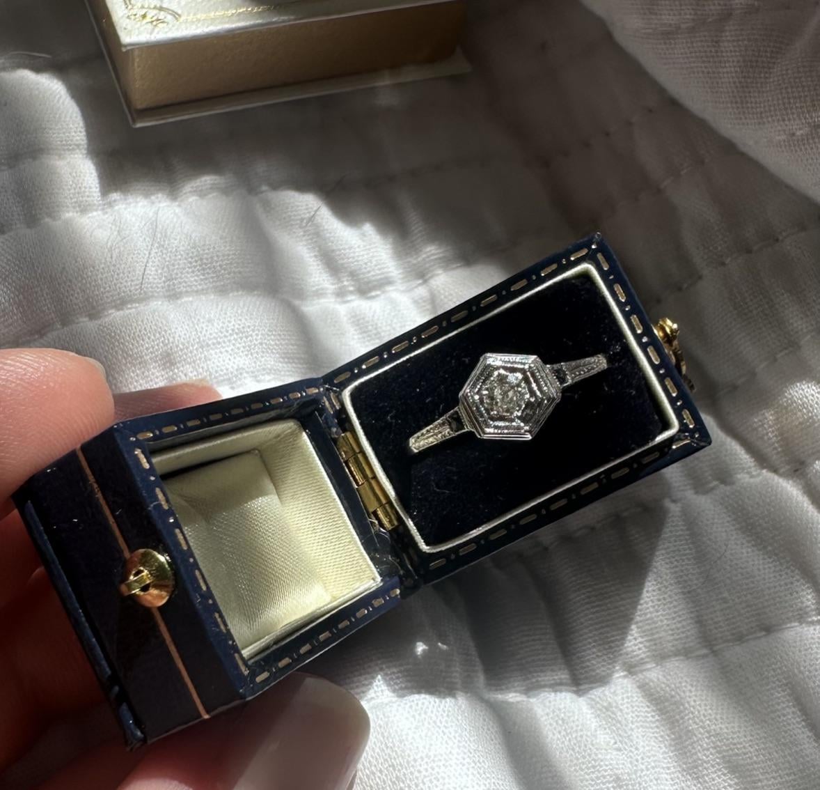 That looks a lot like my original engagement ring, which was a 1930’s vintage piece. It’s beautiful, congrats!
