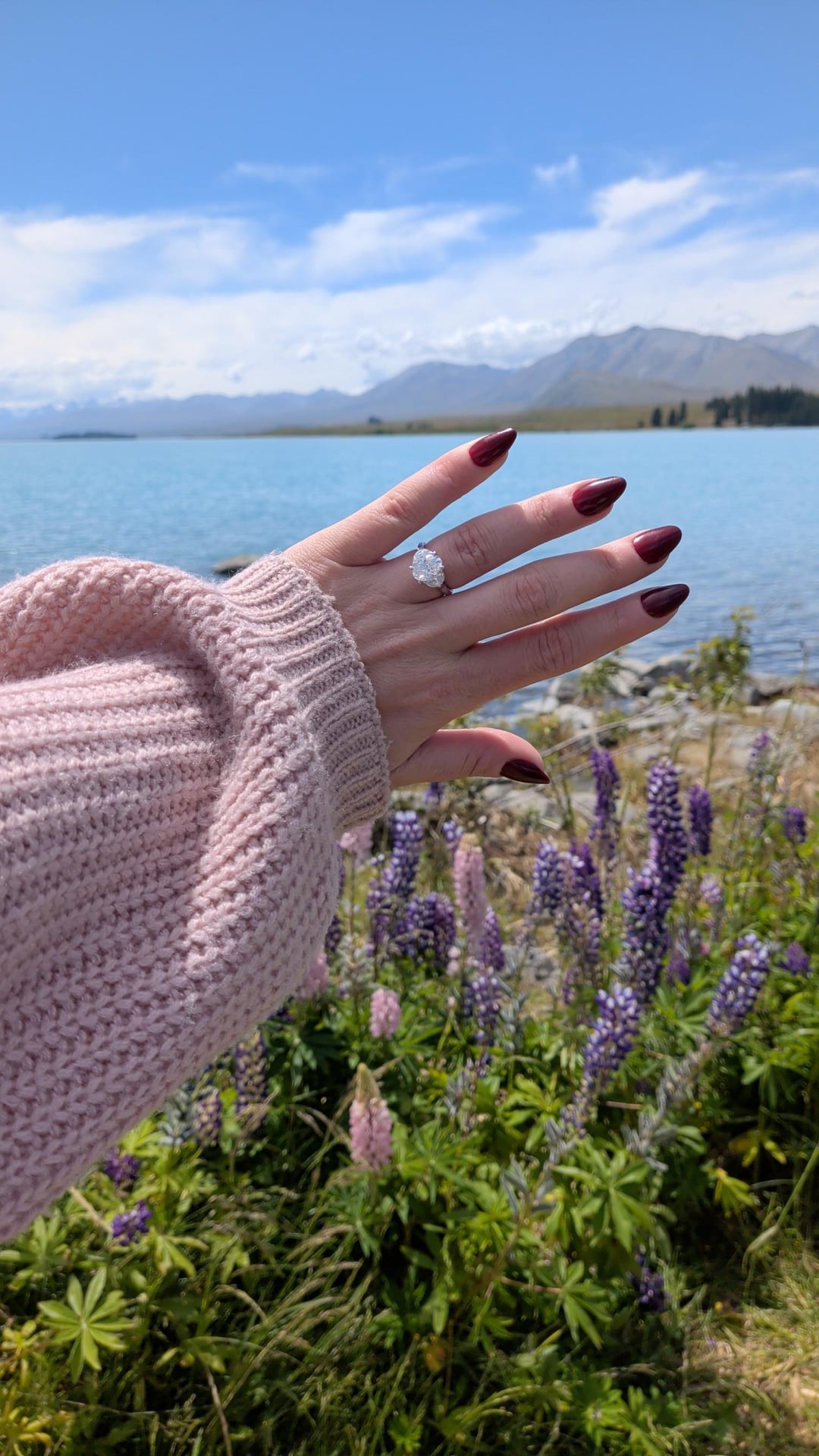 My ring features a beautiful round brilliant diamond, reflecting not just my love but also the gorgeous azure of Lake Tekapo. But enough about my experience; I want to hear from YOU!